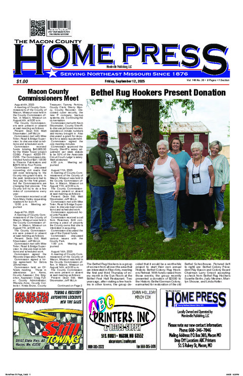 May 1st, 2025 A meeting of County Commissioners of the County of Macon, Missouri was held in the...